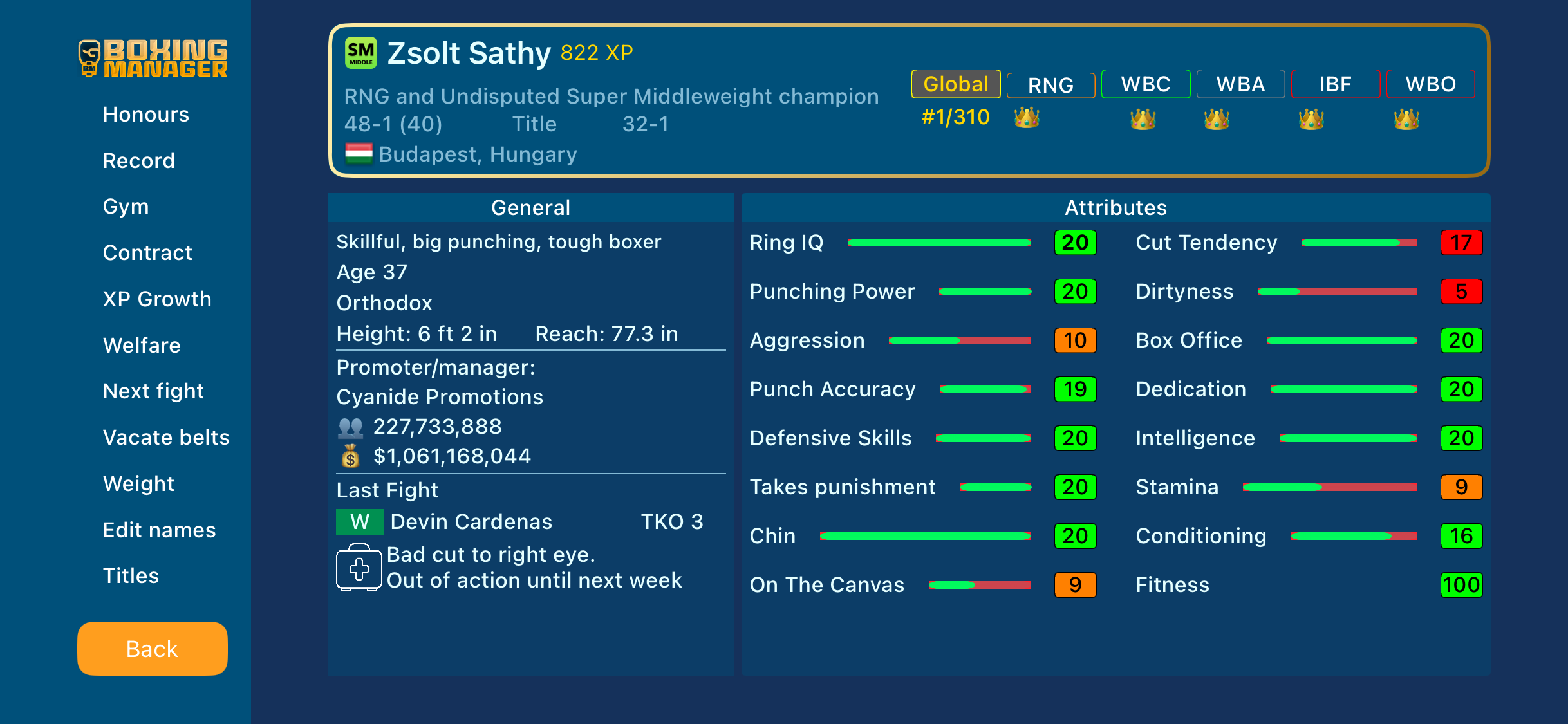 My most decorated boxer just retired. Loved his career as it progressed. Ah well start again aye.